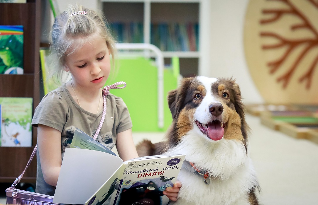 С детьми работают специально обученные собаки-терапевты, которые готовы внимательно слушать начинающего читателя. Дети, которые читают вслух собакам, быстро улучшают свои навыки чтения.